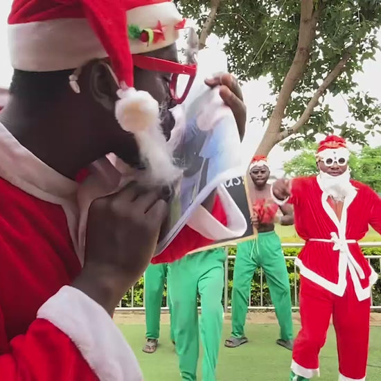 African Fitness Team will sing, dance and greet you. They can choose up to 20 words to recite and up to 15 words to write on the board. You can also add an image to be shown in the camera.
