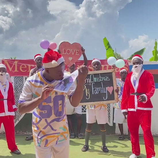 African Football Band will sing, dance and greet you. They can choose up to 20 words to recite and up to 15 words to write on the board. You can also add an image to be shown in the camera.