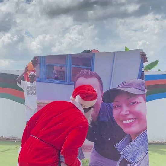African Olive Rugby Team will sing, dance and greet you. They can choose up to 20 words to recite and up to 15 words to write on the board. You can also add an image to be shown in the camera.